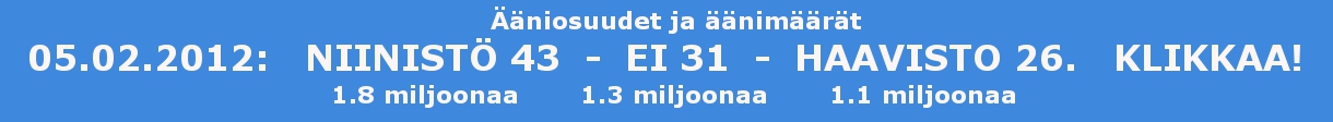 Vuosi sitten: Siis 100 vippieuroa veisi maksimissaan 150 euron vastuuseen. Kyllä kai tällainenkin bisnes olisi vielä kannattavaa ja jos ei olisi niin se sitten loppuisi, jota ei tulisi ikävä. Vippaajat tulisivat hiukan tarkemmiksi rahoja jakaessaan. Kaiken kaikkiaan emme edes tiedä, mistä näiden ”hyväntekijöiden” rahat ovat peräisin. Rahanpesu on ainakin nykymenolla helppoa. Vaikkei tulisi edes voittoa, niin tulisi kuitenkin kirjanpitoa ja sehän riittää. Aikaisemmin lienen ehdottanut jotakin sellaista, että korko saisi olla 50 % ja perintäkulut toiset 50 %, mutta uusi ehdotukseni on tätäkin tiukempi siis. Oikeusministeriö ja sen ministeri Tuija Brax hyvin tietää, että bisnesmiesten varpaille ei saa astua ja kurjia on syytä rokottaakin jotta tulisivat nöyremmiksi. Siksi ministeri puuhastelee kelloaikojen ja muiden kosmeettisten muutosten parissa ja sulkee siltä silmänsä, että lopputulos on aina sama, ei kai siinä niin kovin suurta eroa ole, tehtiinkö ryöstö yöllä vai päivällä. Viikkosanomat. Pertti Manninen. Sunnuntai 2011-01-23 klo 04:58. Vuosi sitten:
