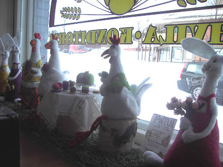 | 2008-03-27 Puput ja kanat tarkkailevat kahvilan pöydissä istuvia ihmisiä. Laukaa. Herkkukondis tänään torstaina 2008-03-27 neljän aikoihin. Kuva: Pertti Manninen. PS. Sulokkeja myydään Laukaantien Kädenjälki-liikkeessä. Isonna! |